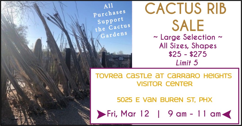 Castle ToursSpecial Tours & EventsVolunteer Cactus Rib Sale – to Benefit Castle Cactus Gardens – Fri Mar 12, 9 to 11 am Tovrea Carraro Society March 8, 2021 0 Comments The Best Ribs in Town! CategoriesCastle Tours, Special Tours & Events, VolunteerTags#becraftywithnature, #cactusribs, #tovreacastle
