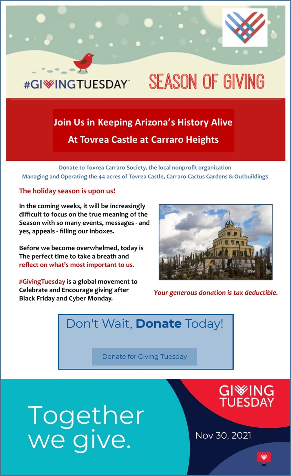 Thank you for supporting the Operations of Tovrea Castle at Carraro Heights. WE appreciate you!